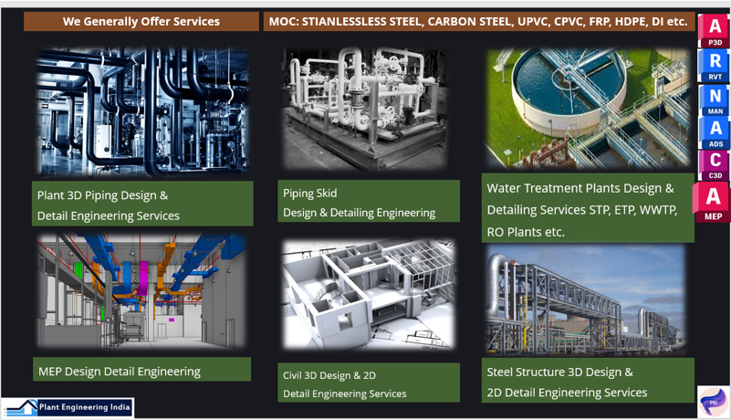 Established in 2016, Plant Engineering India is a prominent project-based engineering services company. We specialize in providing tailored solutions in Piping design, Steel structure design, HVAC, Civil design & detail engineering Our focus is to provide high-quality multidisciplinary engineering services to clients locally and internationally, including in countries such as Australia, the USA, and Italy. We utilize advanced 3D software like MicroStation, Revit, and AutoCAD to ensure precision and excellence in every design. Our mission is to deliver affordable, high-quality engineering solutions using the latest software and best practices. We strive for excellence, embrace change, and exceed expectations through teamwork and dedication, serving as a driving force in shaping your future success.